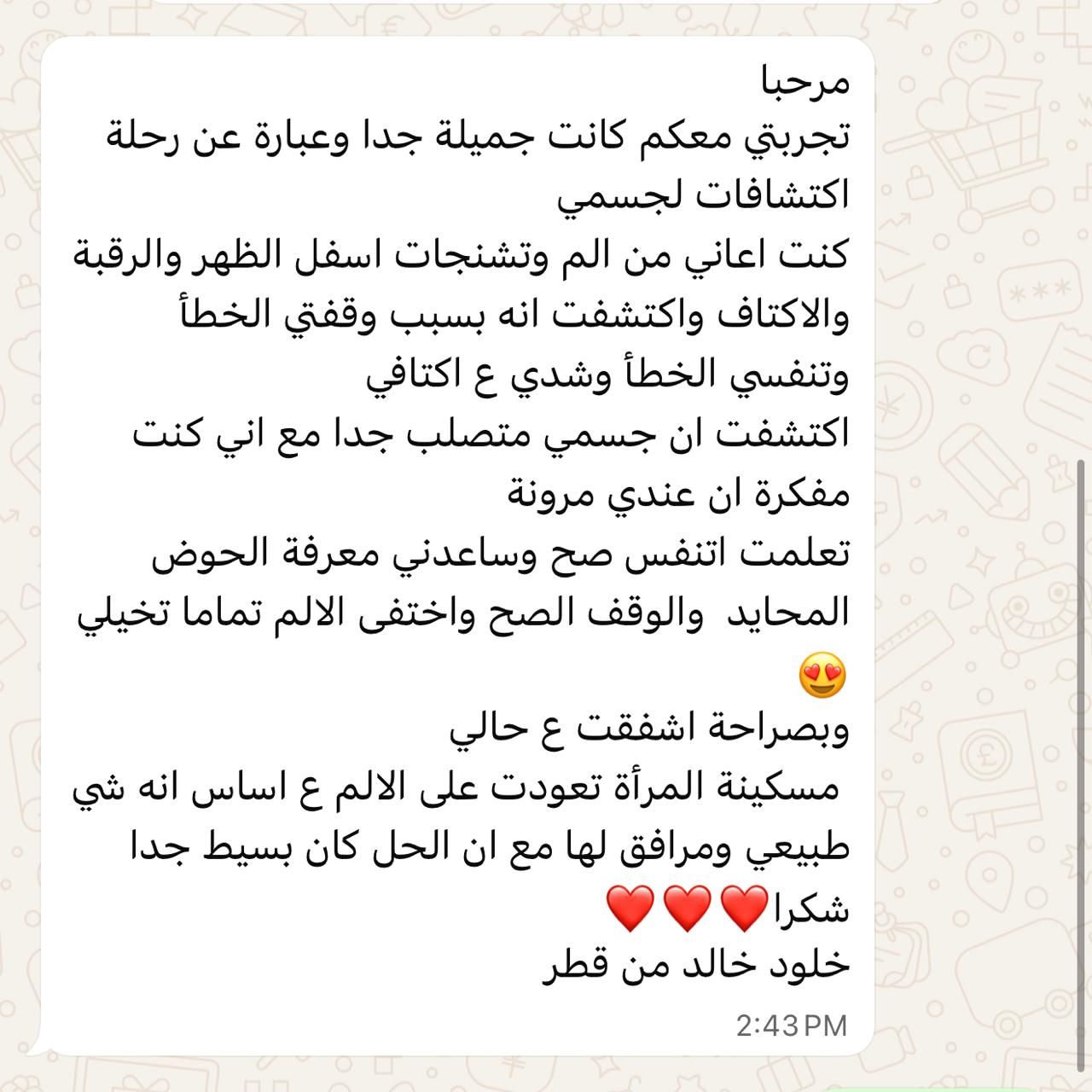 زوجة وأم لطفلين، مدرّبة شخصية وخبيرة في صحة المرأة. رحلتها المهنية نابعة من إيمان عميق بأن كل امرأة تستحق أن تفهم جسدها، تشعر بالقوة فيه، وتعيش بصحة وثقة في كل مرحلة من حياتها. متخصّصة في تأهيل عضلات قاع الحوض وتحسين الصحة الأيضية، وتتابع حاليًا دراستها لنيل درجة الماجستير في الصحة العامة من جامعة أبردين، لتعزيز عملها بنهج علمي مبني على الأدلة.